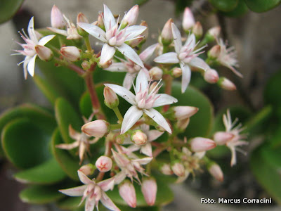 Essa planta é conhecida como Planta Jade ou Bálsamo de Jardim. Não possui qualidades medicinais comprovadas, mas é muito confundida com uma planta medicinal, chamada Bálsamo (Sedum dendroideum).